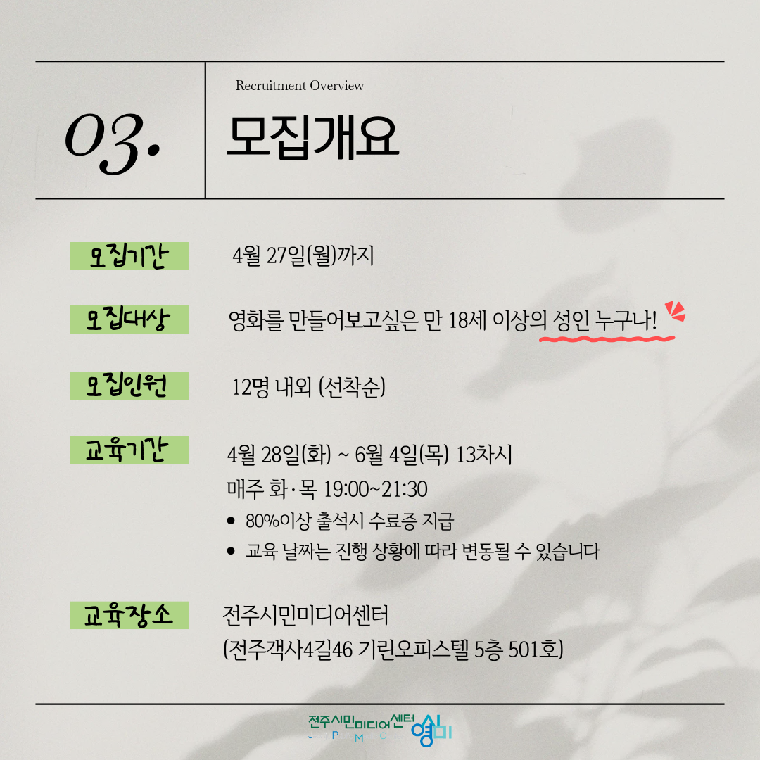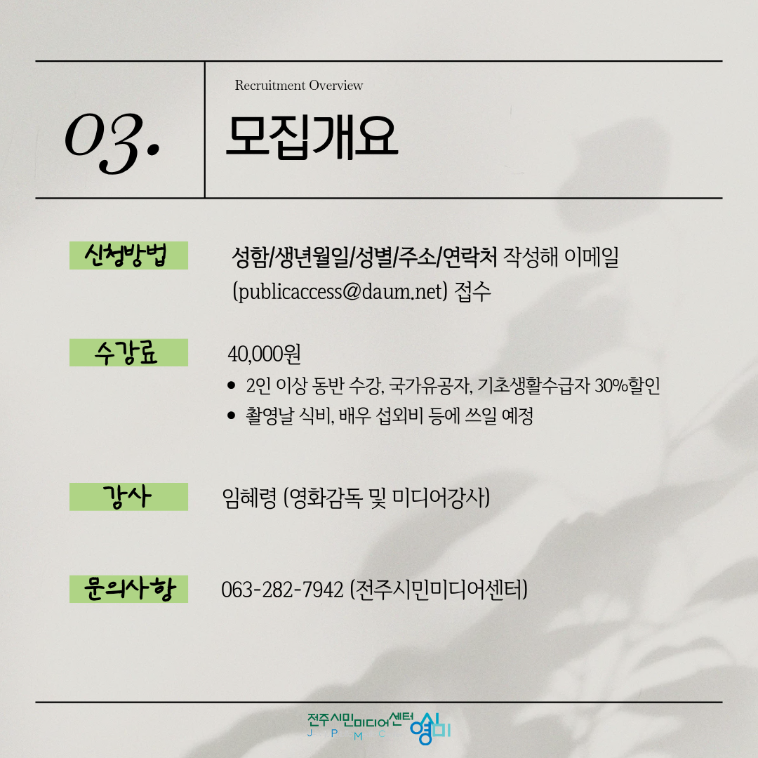 ■ 장 소 : 전주시민미디어센터 강의실(전주객사4길46 기린오피스텔 5층 501호)